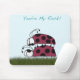 Cute Mouse Pad with the image of one ladybug looking up at the other while on his back, standing in the green grass.