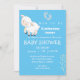 Sweet white lamb with a blue background. Lamb has a touch of blue that is perfect for baby boys. Add your baby shower details for a one of a kind shower invitation.