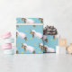 Whimsical lamb skipping with butterflies aqua teal background wrapping paper. Background colour can be changed if required. Original watercolor skipping spring lamb art and designed by Sarah Trett for www.mylittleeden.com