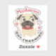 Cute sticker for a pug lover featuring an adorable dog with a large head and small body, devil's trident and hearts for your bad but charming puppers, personalised with your text, perfect for your electronical doohickeys, bag, ride, drink, school or work supplies.