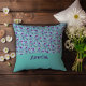 Cute throw pillow featuring a lavender pattern with watercolor flowers and a name, all set against a light teal background. This adorable pillow showcases a delicate lavender floral design rendered in a watercolor style, complemented by a personalised name detail. The light teal backdrop enhances the overall charm of this decorative throw pillow.
