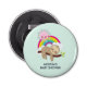 Personalised bottle opener for baby shower / birthday / or just personalised with a name. Designed with an illustration featuring a funny brown sloth happily lazing on a tree branch. A colourful rainbow behind him along with a pink sun hovering over head. Cute, adorable and trendy.