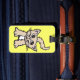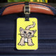 Cute graphic cat luggage tag in bold yellow. Ideal for animal and cat lovers. Personalise with your name and address on the reverse. Pretty design featuring a graphic cat. Art and design by Sarah Trett.