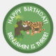 Cute leopard personalised cartoon birthday classic round sticker