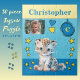 Cute leopard photo name blue yellow kids jigsaw puzzle