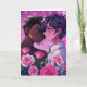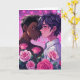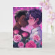Cute bi-racial LGBTQIA+ gay anime couple embracing surrounded by hearts and flowers. Cute personalised Valentine's Day card for the couple that loves anime! Add your photo and change your text in the personalise area.
