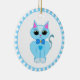 Cute light blue kitty cat & blue rays ceramic tree decoration