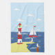 Cute Lighthouse and Boat Seaside Art Tea Towel