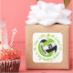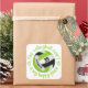 These cute girls' volleyball square stickers feature the typographic phrase, "The volleyball court is my happy place" and two heart outlines in lime green encircling a volleyball with lime green, black and white coloured panels - customise with the athlete's name and jersey number - by katz_d_zynes