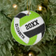 This girls volleyball ornament features a realistic looking volleyball with lime green, black and white panels - customize with the athlete's name and year on the front and back of the ornament - by katz_d_zynes