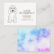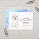 Minimalist , original matte paper professional square business card.Black and white  dog drawing. Blue and purple background - marble photo.