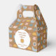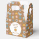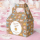 This adorable favour box features a lion and playful geometric pattern in soft pastel colours, perfect for adding a touch of fun to any celebration. With shapes like stars, circles, and crescents in teal, pink, and yellow against a warm brown background, it’s a charming way to say "thank you" to your guests. Ideal for a child's birthday, baby shower, or any festive occasion, this box combines modern design with a whimsical twist. Personalise it with your message to make your event even more special!