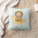 Cute Lion Fishing on the Moon Watercolor Cushion