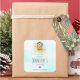 Made with love kitchen stickers with a cute watercolor illustration. An adorable lion wearing a crown fishing for stars sitting on a crescent moon resting on a fluffy cloud. Magical fantasy illustration. Light blue watercolor background.