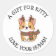 adorable Christmas sticker featuring a cute corgi wearing reindeer antlers and a festive scarf. Perfect for labeling presents, treat bags, and holiday boxes for your beloved cat or pet. This playful and heartwarming design makes your gift extra special and adds a fun seasonal touch. Ideal for pet lovers, Christmas packaging, and personalized gift-giving.