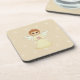 Cute little angel holding a heart with snowflakes on beige background coaster.