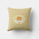 Fashion beige throw pillow with a cute little angel and star pattern. The little angel is holding a pink heart inside a circle.