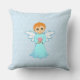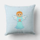 Little angel dressed in turquoise on a starry light blue background Throw Pillow. Angel decorative pillows!