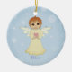 Cute little angel holding a heart on light blue Ceramic Ornament. Text can be personalized.