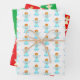 Cute little angel pattern on green, red and white wrapping paper sheet