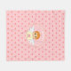 Unique fleece blanket with a cute little angel holding a pink heart and heart pattern on pink background.