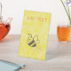 Cute little bee drawing. Custom yellow watercolor table signs. Edit text to customise. Baby shower decor idea.