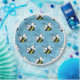 Cute little bee drawing. Custom blue watercolor paper plates. Baby shower decor idea.