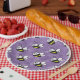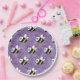 Cute little bee drawing. Custom purple watercolor paper plates. Baby shower decor idea.