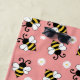 Seamless pattern with cute little flying bees and white daisy flowers decoration on pink background.