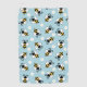 Seamless pattern with cute little flying bees and white daisy flowers decoration on light blue background