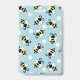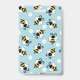 Seamless pattern with cute little flying bees and white daisy flowers decoration on light blue background