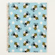 Seamless pattern with cute little flying bees and white daisy flowers decoration on light blue background