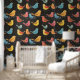 Cute Little Bird Pattern Chalk Drawing Wallpaper