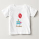 Monsters are not exactly that scary for kids when they are as cute as this little blue monster! This little monster has a party hat, a sharp tooth protruding out of its mouth, a red tail, purple eyes, tiny arms and feet and a red balloon tied to its tail. An adorable, colourful and attractive cartoon monster tee for the little ones. The balloon has the words ONE which makes this design great for first birthdays for toddlers. Personalise with baby's name.