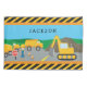Got a little boy who loves construction vehicles? This pillowcase is perfect! The pillowcase has a dump truck, cement truck, and excavator, all working together at a road construction site. A young boy stands near the front with a stop sign to help stop traffic. There are also orange safety traffic cones and background mountains and blue sky. Finish the pillowcase with your young man's first name.