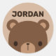 Cute Little Brown Bear with Personalised Name Classic Round Sticker