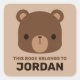 Cute Little Brown Bear with Personalised Name Square Sticker