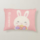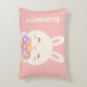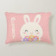 Cute Little Bunny Cartoon & Flowers For Girls Pink Accent Pillow