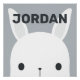 This design features cute little bunny rabbit with personalised name in grey modern sans serif font style on light grey background.