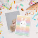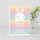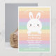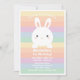 Cute little bunny on pastel rainbow background kids 1st birthday photo invitation.