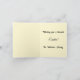 The interior is blank, so really it can be used on any occasion. The card is on sturdy, white paper and the image clear and the colors true.