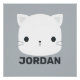 This design features cute little cat with personalised name in grey modern sans serif font style on light grey background.