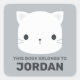 This design features cute little cat with personalised name in grey modern sans serif font style on light grey background.