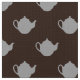 cute little coloured teapots on brown pattern fabric perfect for upholstery designs, quilting, crafts or any other sewing project