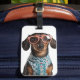 Cute Little Dachshund With Red Glasses Luggage Tag