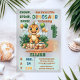 So exciting! Where has the last year gone? It has flown by, right? Time to celebrate your little one in prehistoric style with this cute "Chomp, Stomp, Rawr!" "Our Cute Little Dinosaur Is Turning 1" boy's 1st Birthday Party design. Perfectly colour coordinated in nature tones of dark green, dark blue, rust, sand beige and pale muted teal blue, it sets the perfect stage for your prehistorically-themed celebration. The cute little dinosaur has a big old grin on his face as he sports a party hat, some lit candles and is surrounded with presents and balloons on a backdrop of jungle-themed greenery. The letters of "Dinosaur" and the age "1" are done in a custom dinosaur-themed type. This unique design is sure to impress your guests as well as your cute little dinosaur!