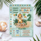 So exciting! Where has the last year gone? It has flown by, right? Time to celebrate your little one in prehistoric style with this cute "Chomp, Stomp, Rawr!" "Our Cute Little Dinosaur Is Turning 2" boy's 2nd Birthday Party design. Perfectly colour coordinated in nature tones of dark green, dark blue, rust, sand beige and pale muted teal blue, it sets the perfect stage for your prehistorically-themed celebration. The cute little dinosaur has a big old grin on his face as he sports a party hat, some lit candles and is surrounded with presents and balloons on a backdrop of jungle-themed greenery. The letters of "Dinosaur" and the age "2" are done in a custom dinosaur-themed type. All is backdropped by a pale watercolor light teal blue watercolor background. The back features a dinosaur footprint pattern over the same watercolor background. This unique design is sure to impress your guests as well as your cute little dinosaur!
