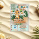So exciting! Where has the last year gone? It has flown by, right? Time to celebrate your little one in prehistoric style with this cute "Chomp, Stomp, Rawr!" "Our Cute Little Dinosaur Is Turning 3" boy's 3rd Birthday Party design. Perfectly colour coordinated in nature tones of dark green, dark blue, rust, sand beige and pale muted teal blue, it sets the perfect stage for your prehistorically-themed celebration. The cute little dinosaur has a big old grin on his face as he sports a party hat, some lit candles and is surrounded with presents and balloons on a backdrop of jungle-themed greenery. The letters of "Dinosaur" and the age "3" are done in a custom dinosaur-themed type. The back features a dinosaur footprint pattern over the same watercolor background. This unique design is sure to impress your guests as well as your cute little dinosaur!