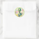 This stickers features a cute little dinosaur with a lovely face framed by lots of colourful balloons. Great sticker for your children's birthday party! For all children who love dinosaurs! Custom text and background.