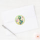 Cute little dinosaur with lots of colourful balloo classic round sticker